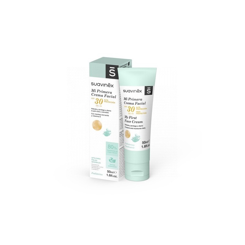 La Crema Facial con factor de proteccíon solar 30 UVB y UVA hidrata y protege la delicada piel del rostro, especialmente la clara y sensible, frente a agresiones externas como la polución, el frío o el viento. Apta desde el primer día para uso diario.