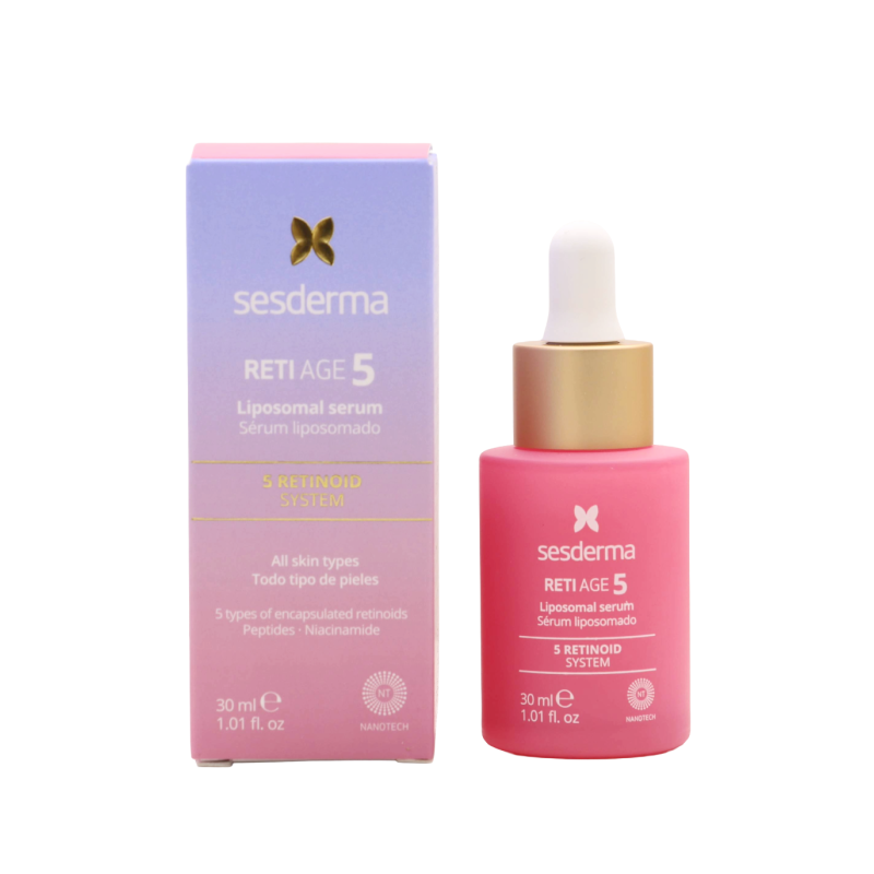 Gracias a su sistema que combina 5 tipos de retioides (Retinol,Retinaldehído,Retinil propionato,HP Retinoato,Retinoil hialuronato sódico), con péptido miméticos y activos que potencian la hidratación y refuerzan la función barerra de la piel, se convierte en el sérum antiedad por excelencia. Y gracias a la tecnología de encapsulado en liposomas, exclusiva d eSesderma, conseguimos una liberación sostenida, alta potencia y sobretodo alta tolerancia, apto para un tratamiento nstantaneo y a largo plazo.